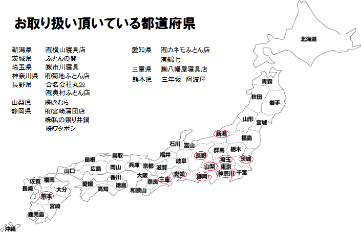 眠り家では地域の小売店パートナー様を募集しています。 枕に関するお問い合わせは053-437-2727 ㈱ワタボシまで